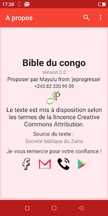 Bible du Congo is an application proposed by Mayulu since I am progressing with the aim of facilitating the understanding of the word of God.