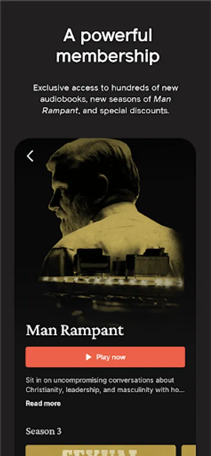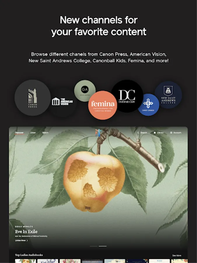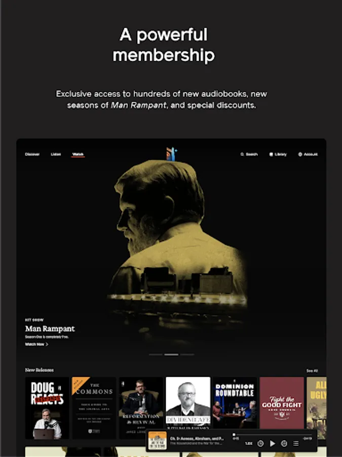 Watch and cast Man Rampant to your Apple TV, listen to your favorite Canon Press audiobooks, along with more video and audio added weekly.