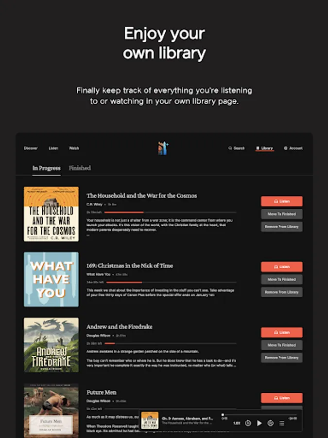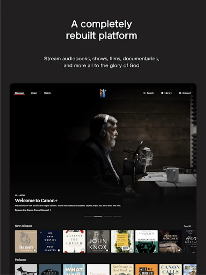 Canon+ is an all-access pass to faithful Reformed Christian content. Stream and download unlimited audiobooks, sermon series, conferences, debates and other Christ-centered audio resources, as well as watch miniseries, talk shows, documentaries, video courses.