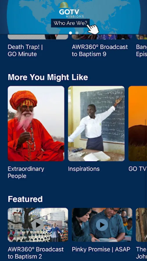 GOTV Missions is a mission-based streaming service built on the principles of the Seventh-Day Adventist church. This streaming service hosts content for many Adventist mission organizations that are changing lives around the world. If you are in search of inspiring content highlighting all of the work being done around the world through Adventist Mission Organizations, you won’t be disappointed in this ever-growing, continually updated service. Be inspired by the humanitarian work being done around the world and the people being reached for God’s kingdom.