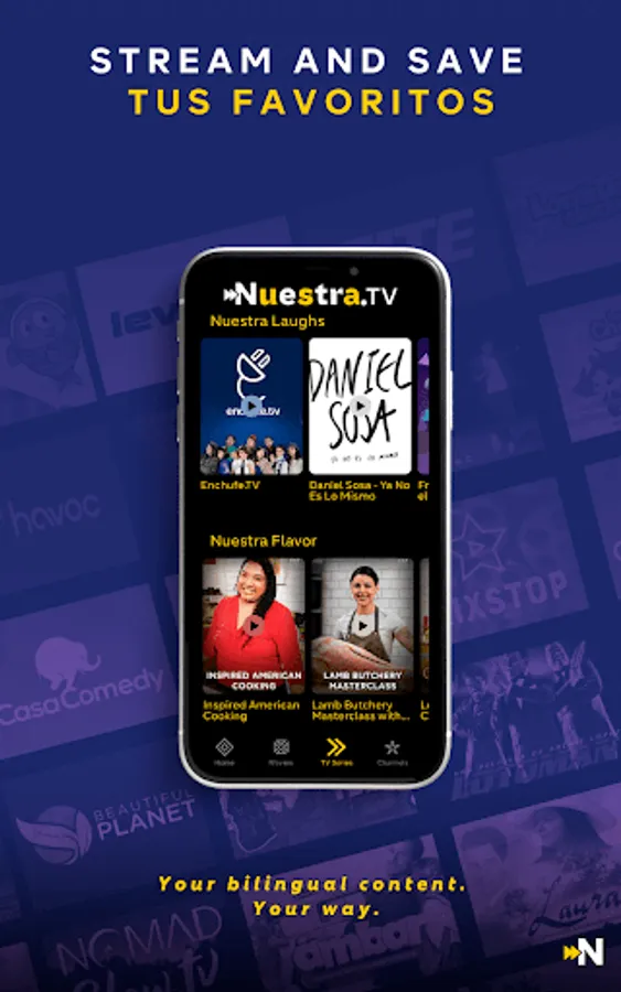 Download Nuestra.TV today and start streaming content in both English and español!