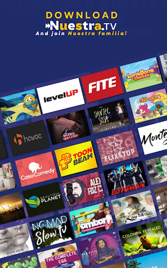 Enjoy FREE, bilingual streaming that feels like “familia” with Nuestra.TV. NUESTRA means ours in Spanish and for that reason, we’re proud to provide Spanish, English and Spanglish speaking families with premier bilingual content that entertains, informs, and inspires across cultural diversity, generations, languages, and devices.