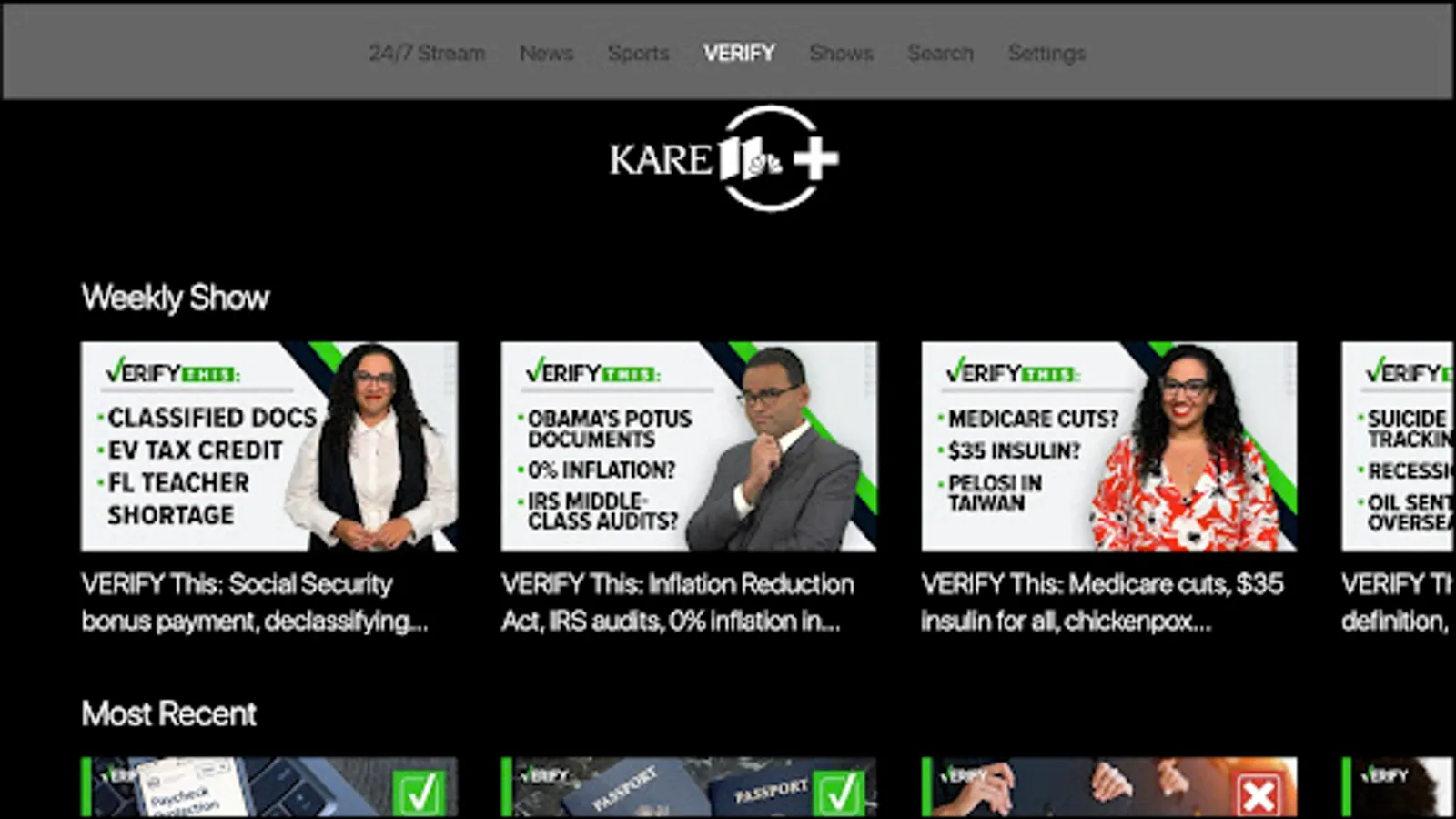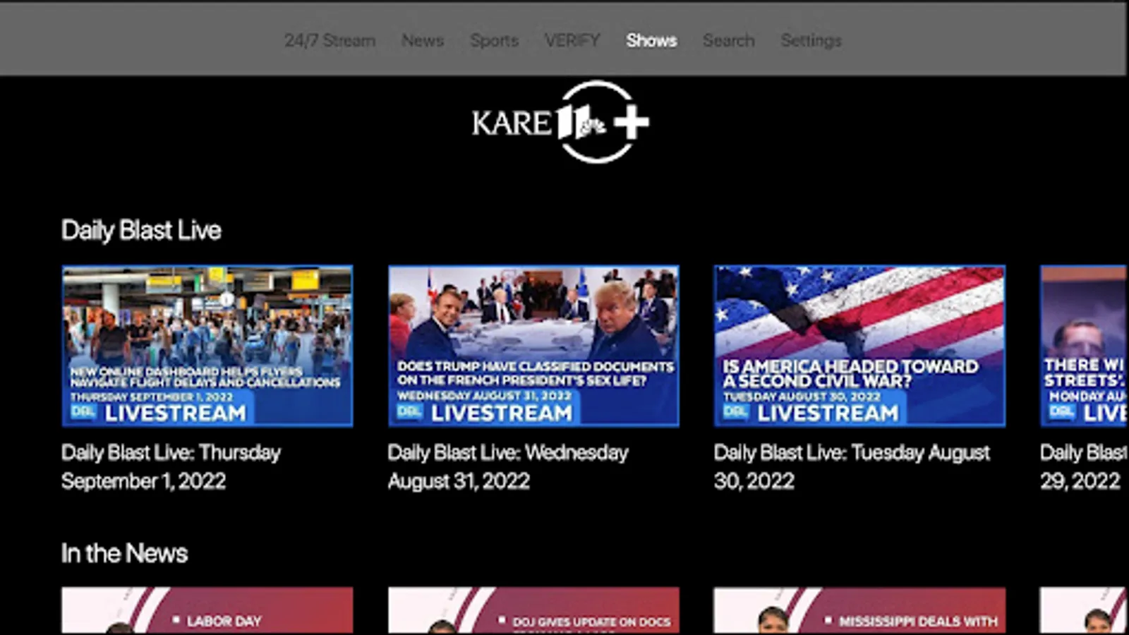 Stay up-to-date with the latest news and weather in the Minneapolis-St. Paul, MN, area on the all-new KARE 11+ app from KARE 11. Our channel features the latest breaking news impacting you and your family, plus video coverage from local events. KARE 11+ has the latest in sports from your favorite local pro and college teams, plus entertainment content if you want to kick back and relax. Know what's real or fake with our award-winning news verification program VERIFY. Download NOW.