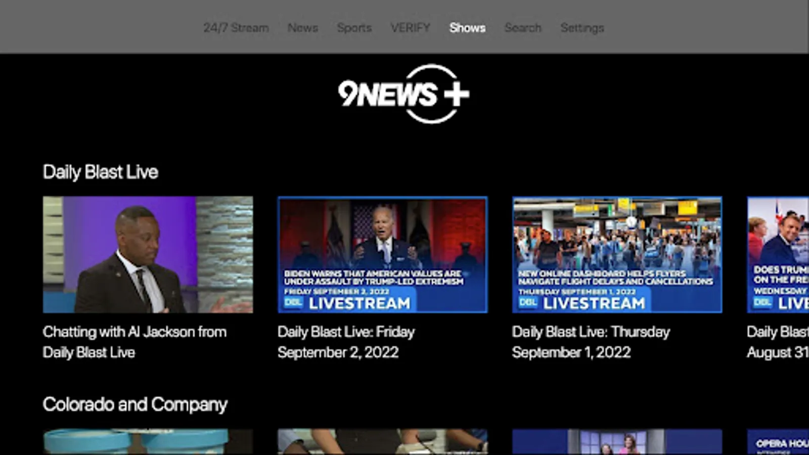 Stay up-to-date with the latest news and weather in the Denver, CO, area on the all-new 9NEWS+ app from KUSA. Our channel features the latest breaking news impacting you and your family, plus video coverage from local events. 9NEWS+ has the latest in sports from your favorite local pro and college teams, plus entertainment content if you want to kick back and relax. Know what's real or fake with our award-winning news verification program VERIFY. Download NOW.