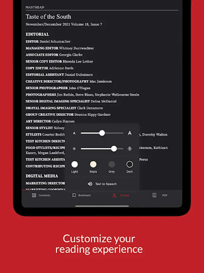 Taste of the South helps you savor the unique dishes, cooking personalities and culinary destinations of the South- and now you can enjoy every single page on the iPad! For readers who love Southern cooking or simply experimenting with new flavors, this magazine is a guidebook. Taste of the South is for those who have a passion for good food, at home and on the road. Every issue is a guide to Southern lifestyle.