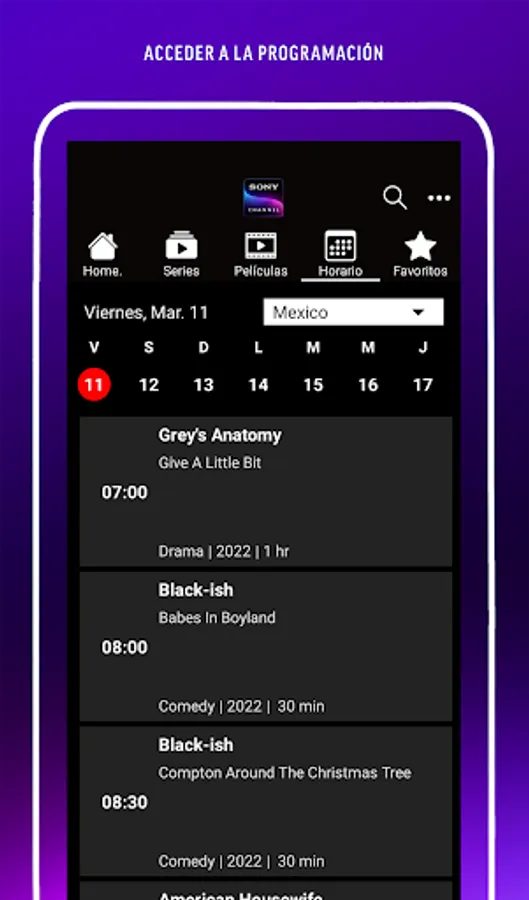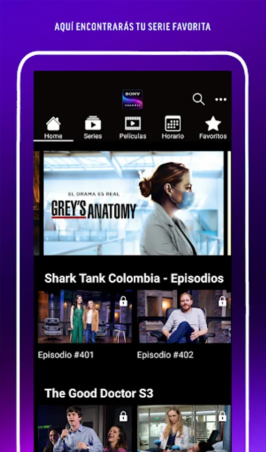 Catch up on episodes of Doc, The Good Doctor, Grey's Anatomy, Station 19, Shark Tank, and more! Remember that you need the information of your TV provider account to be able to enter. The following are the providers integrated to SONY CHANNEL: Latin America: Argentina: Antina, Cablevisión, Colsecor, Dibox, DirecTV, Express, Gigared, Supercanal, Telecentro, Telered Bolivia: Cotas, Tigo, Digital TV Brazil: Oi TV, SKY, Vivo, Cabo Telecom Chile: DirecTV, GTD Manquehue, Telefónica de Coyhaique, Telefónica del Sur Colombia: Claro, DirecTV, ETB, Movistar, UNE Costa Rica: Cabletica, Tigo (Millicom) Dominican Republic: Tricom Ecuador: DirecTV, TV Cable El Salvador: Tigo Guatemala: Tigo Honduras: Tigo Mexico: Axtel, Dish, Megacable Panama: Cable Onda, Cable & Wireless Paraguay: Tigo Peru: DirecTV, Movistar Uruguay: Cablevisión, DirecTV, Equital, Montecable, Nuevo Siglo, TCC Venezuela: DirecTV Caribe: Barbados: DirecTV Curaçao: DirecTV Guyana: DirecTV Trinidad & Tobago: DirecTV We are working to integrate more providers to SONY CHANNEL!