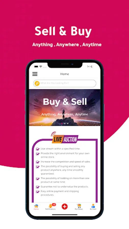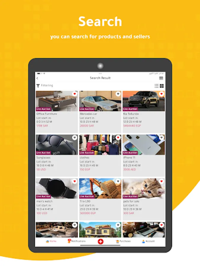 You can sell or buy products, whether they are new or used by auction system and with a new live broadcast feature (video or audio).