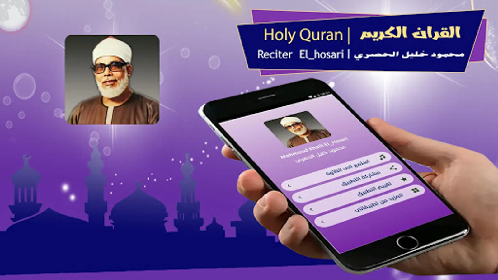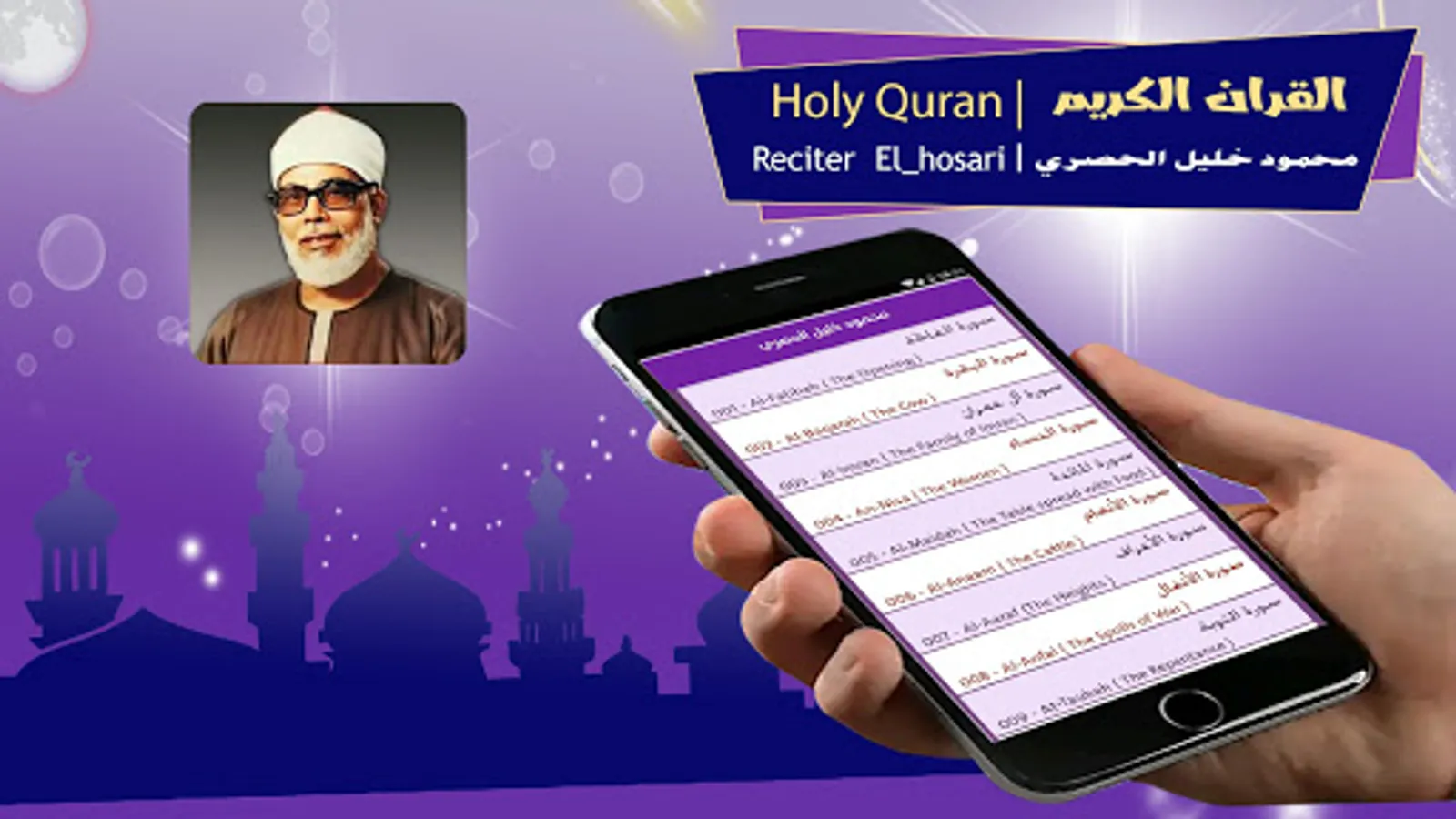 The application that is in your hands includes the complete Holy Quran by Sheikh Mahmoud Khalil Al-Hosari