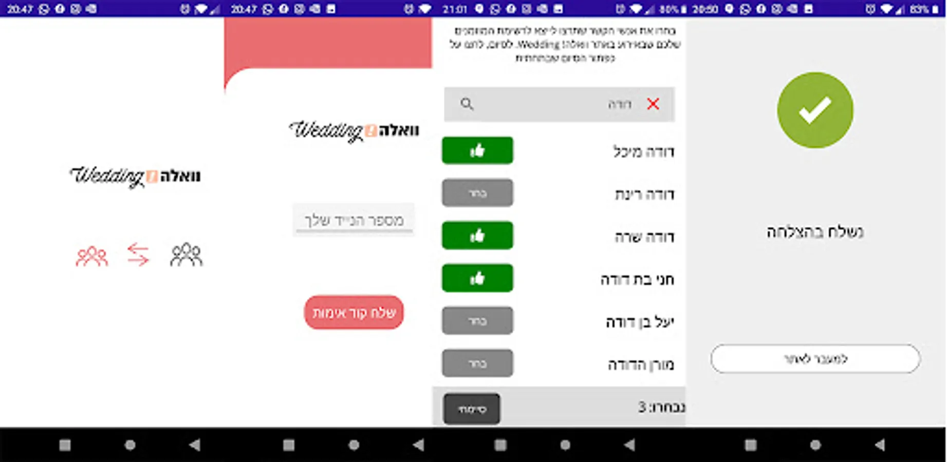 Planning a wedding/bar mitzvah/bachelorette party? At Vala Mazel Tov we have created an advanced system for you that will accompany you all the way to the perfect event. How It Works? All the important information and all the most innovative tools for managing your event are one click away - and all easily and for free.