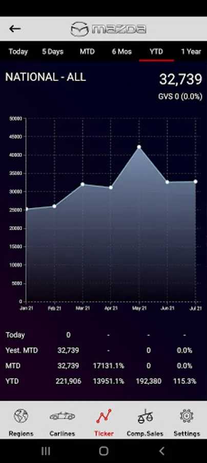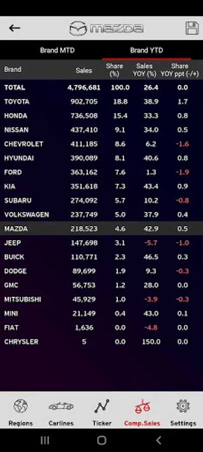 The Mazda Sales App provides Mazda Corporate and Dealer users with real-time sales information as vehicles are RDR'ed into the MNAO System.