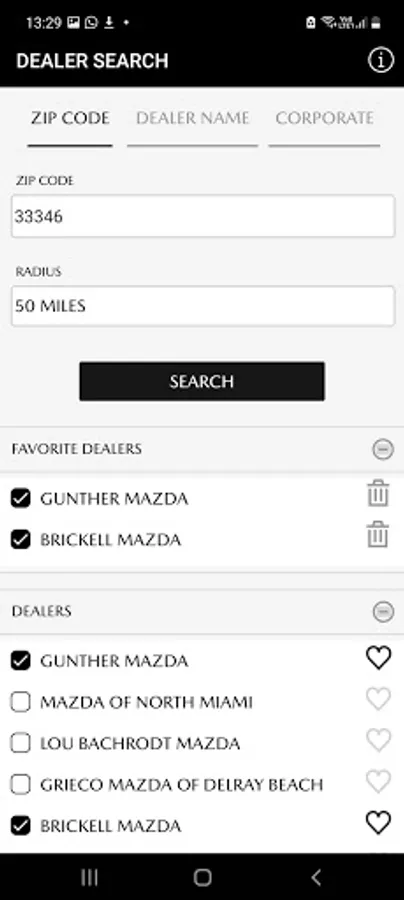 - Ability to select which dealers are searched (so a user may specify their local preferences if they plan to swap)