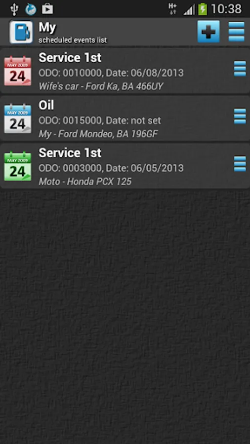 - scheduler for regular and future events based on ODO value and / or specific Date.