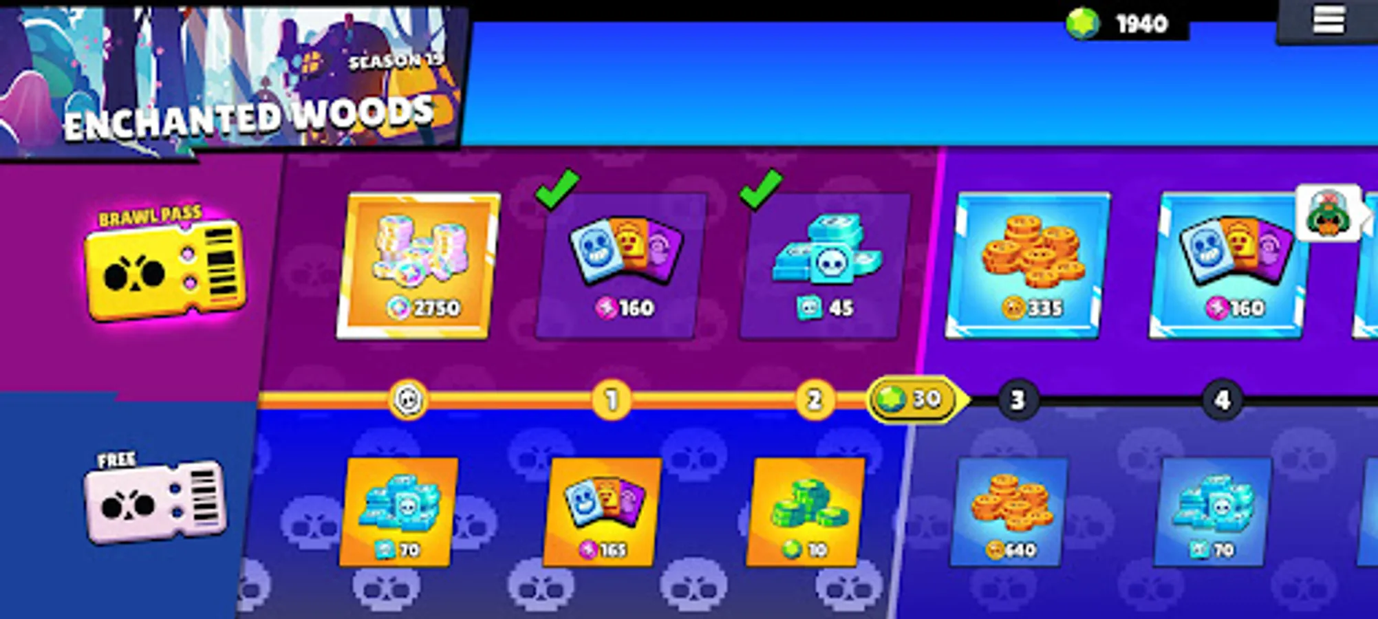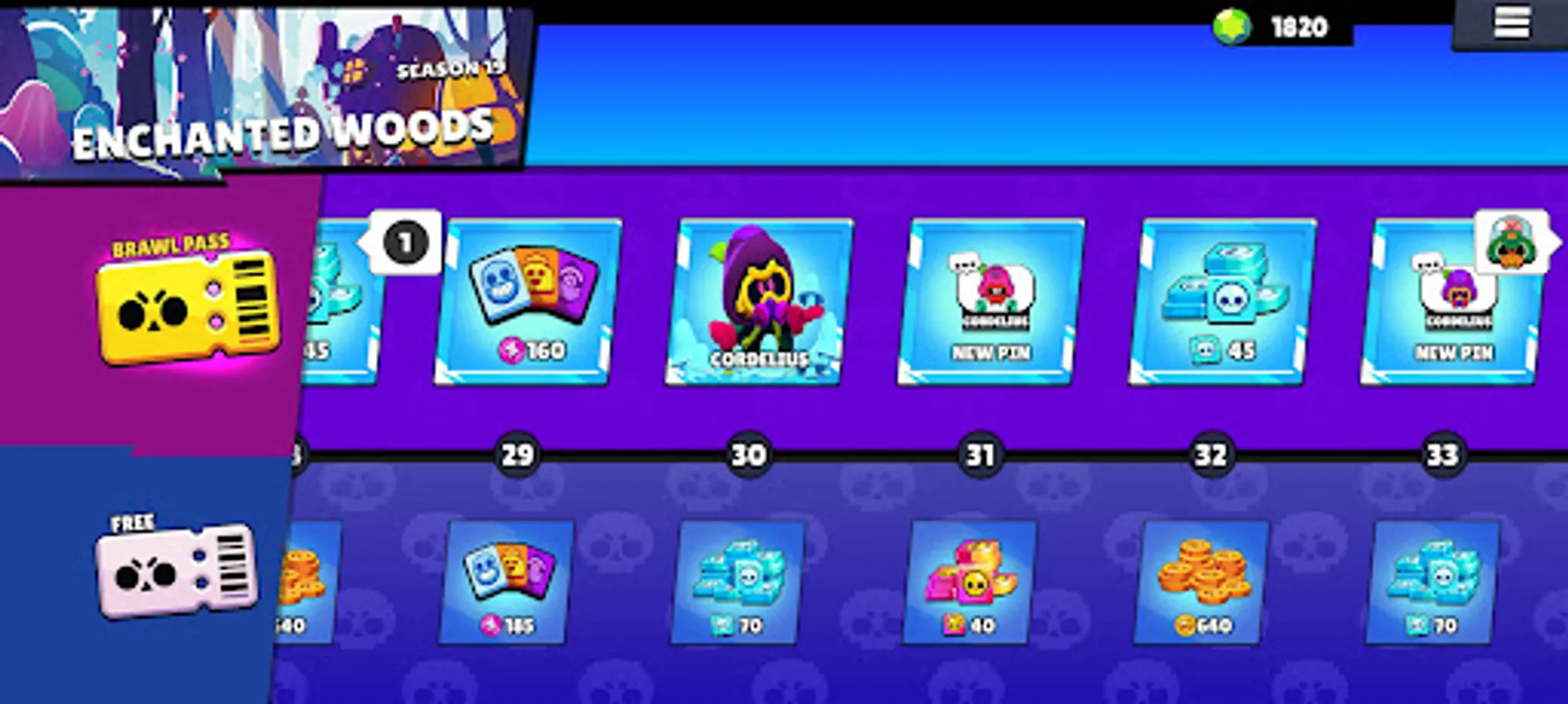 Brawl Pass currently has Season 19 (Enchanted Woods), you can open new brawler Cordelius and his skins. You don't need to collect gems to open boxes. Mega box, Brawl box, Big box; they are ready and free to be used. If you are a Brawl Stars fan, you should definitely finish this brawl pass.