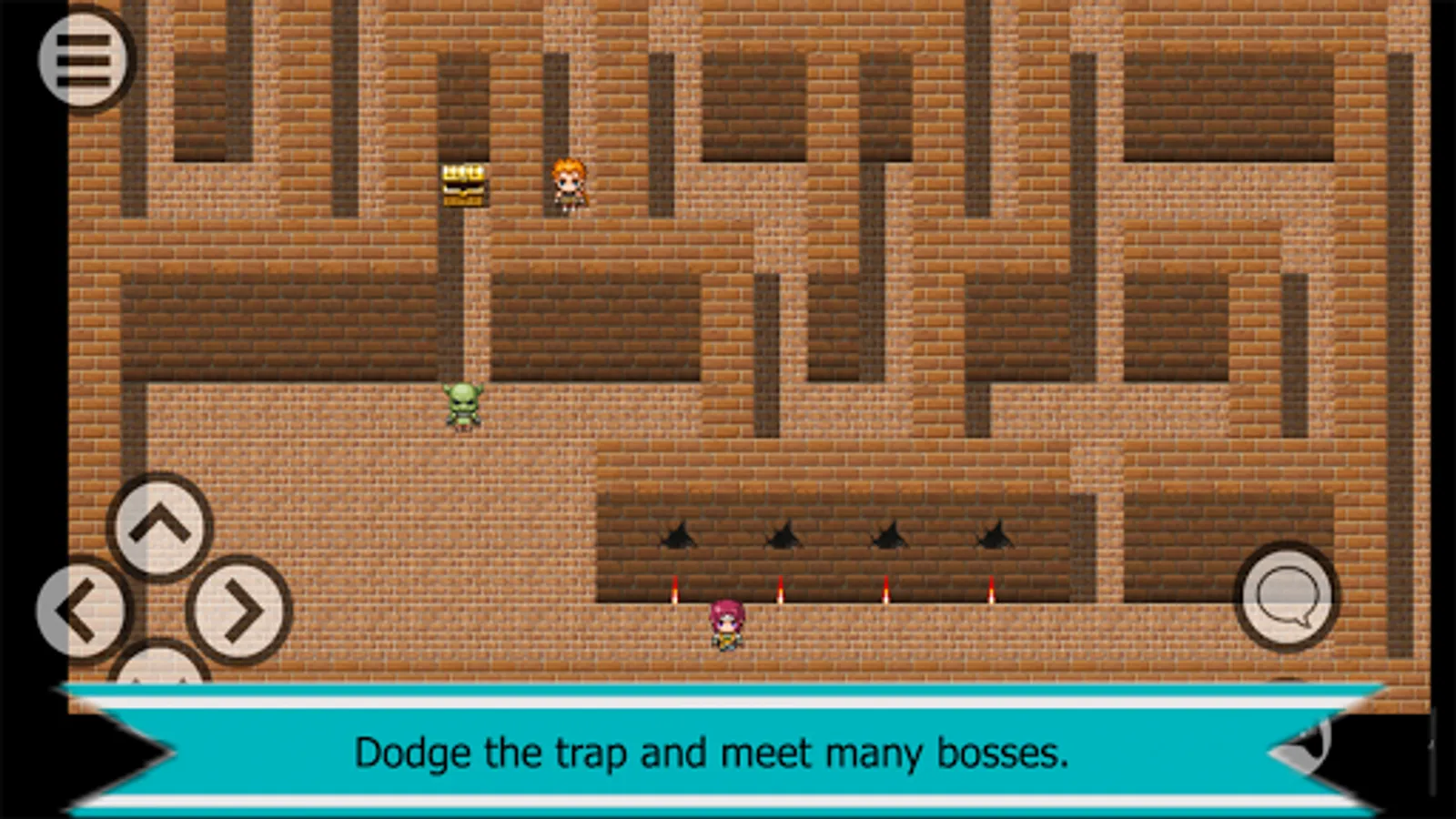 In the dungeon of mazes Arena. There are many people eat to the treasure. One young man named gremlin. I came to find the God sword. I have comes from the village of spartacus Many types of weapons. This mazes. is very big. There are many treasures. But it is dangerous as well. There are many monsters That are ready to attack you. If you win, you can still earn money. Experience And many items. In Addition to monsters, there are soldiers and warriors Also. The same goal you want to find the treasure. Do not go in if you are not sure.
