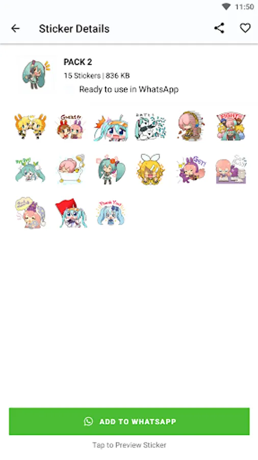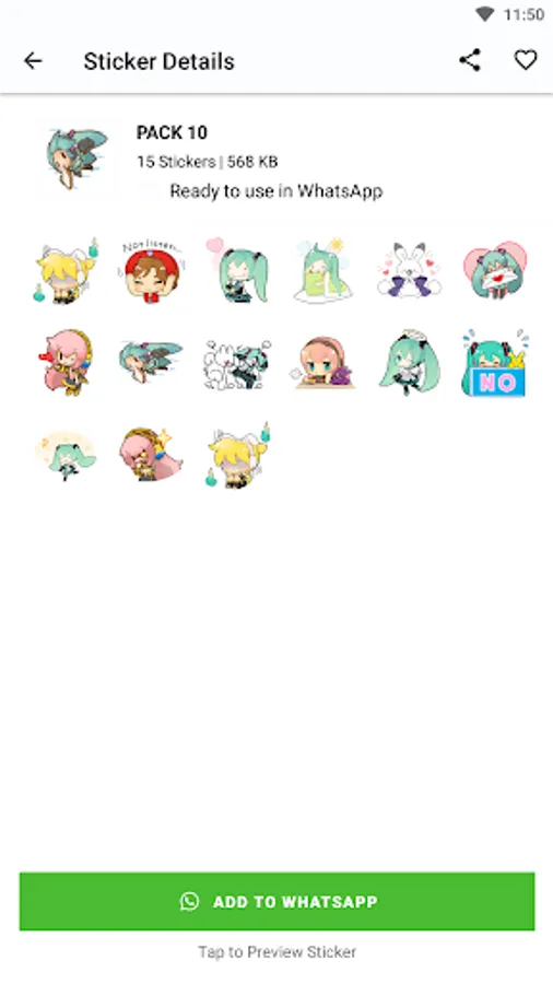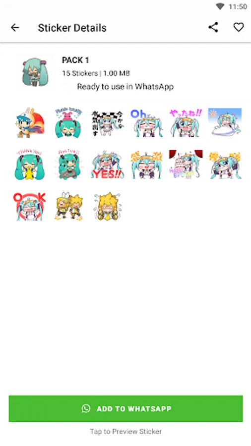 Each premium sticker in the "MikuChat Stickers" app features the well-known Hatsune Miku in a variety of emotions, poses, and moods. These stickers wonderfully encapsulate Miku's essence, enabling you to express your feelings and messages in a playful and unique way, whether you want to express joy, excitement, or simply want to share the magic of Miku.