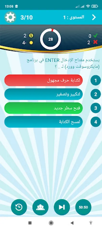 The game contains a huge amount of general questions, and cultural, religious and political questions, as "Zedni | Challenge the Minds" includes different sections, in each section there are 9 levels, and each level has 10 questions and the player must pass at least half of them to move to The next stage, depending on your general culture and means of assistance, for each stage you pass, you get medals and achievements, as the player's life is related to points and gold coins.