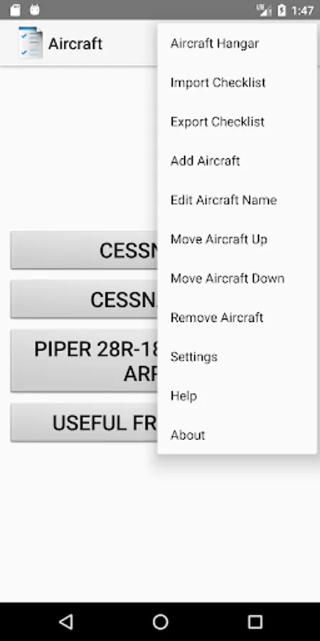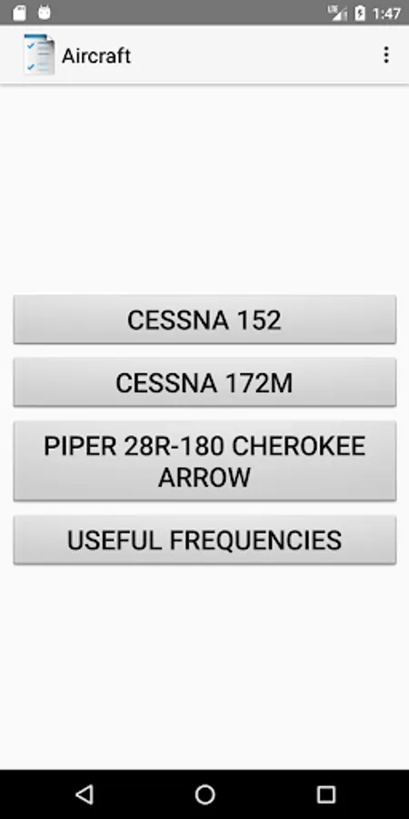 This application comes with Cessna 152, 172M and Piper 28R-180 Cherokee Arrow checklists.