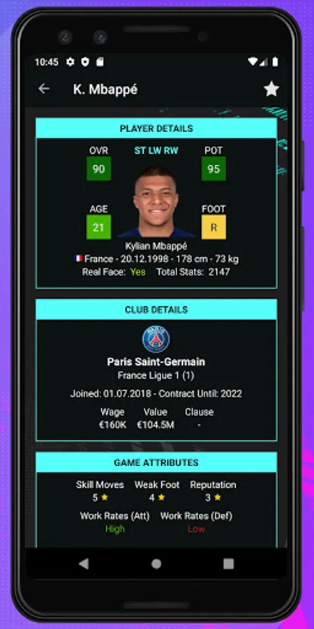 Find players easily by their Overall Rating, Potential, Rating, Age, Real Face, Foot, Market Values, Game Attributes, Positions, Nationality, League, Club, Contract and Skill. Analyze players in detail. Player Potentials 21 is super easy to use. This companion app will be your best guide during the transfer seasons.
