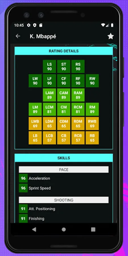 In Player Details page you are able to display very detailed data like Player Photo, Player Full Name, Preferred Positions, Preferred Foot, Date Of Birth, Height, Weight, Contract End Date, Wage, Value, Release Clause, Specialties, Traits, Weak Foot, Skill Moves, Work Rates, Total Stats and Player Ratings Per Positions.