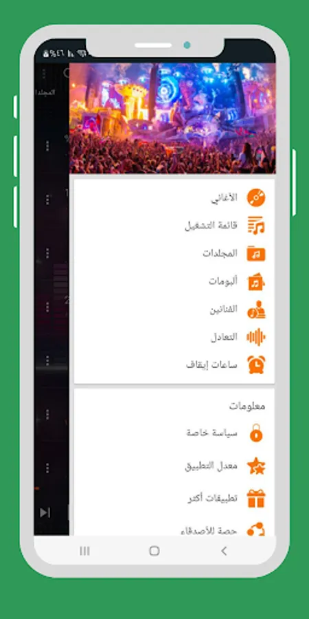 The best music player application from the local phone memory, the application contains many beautiful features, such as you can create different lists of artists or different albums and you can change the volume of the sound through seven different rhythms