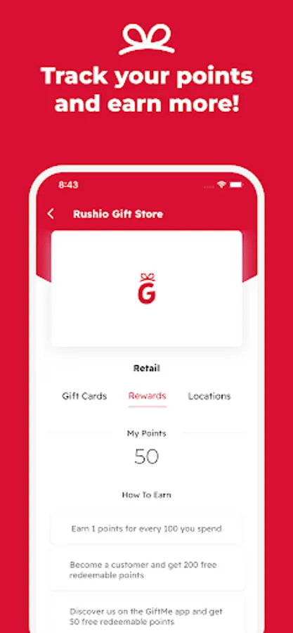 GiftMe is a mobile app that helps you discover, shop, and save from small and medium size businesses in your area. GiftMe allows you to track your loyalty points, redeem your points for rewards and also send e gift cards to your loved ones. GiftMe allows you to keep all your e gift cards in one place so that you can use them at your convenience. With GiftMe, gifting has been given a whole new meaning.