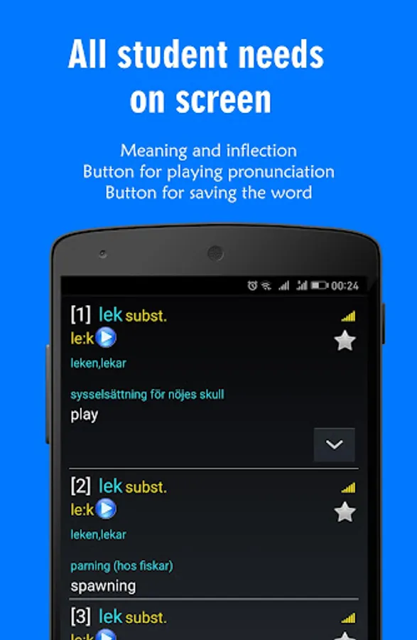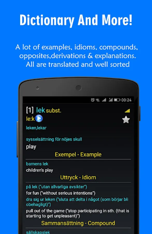 Lexin Smart is the first offline Swedish dictionary application based on Lexin site.