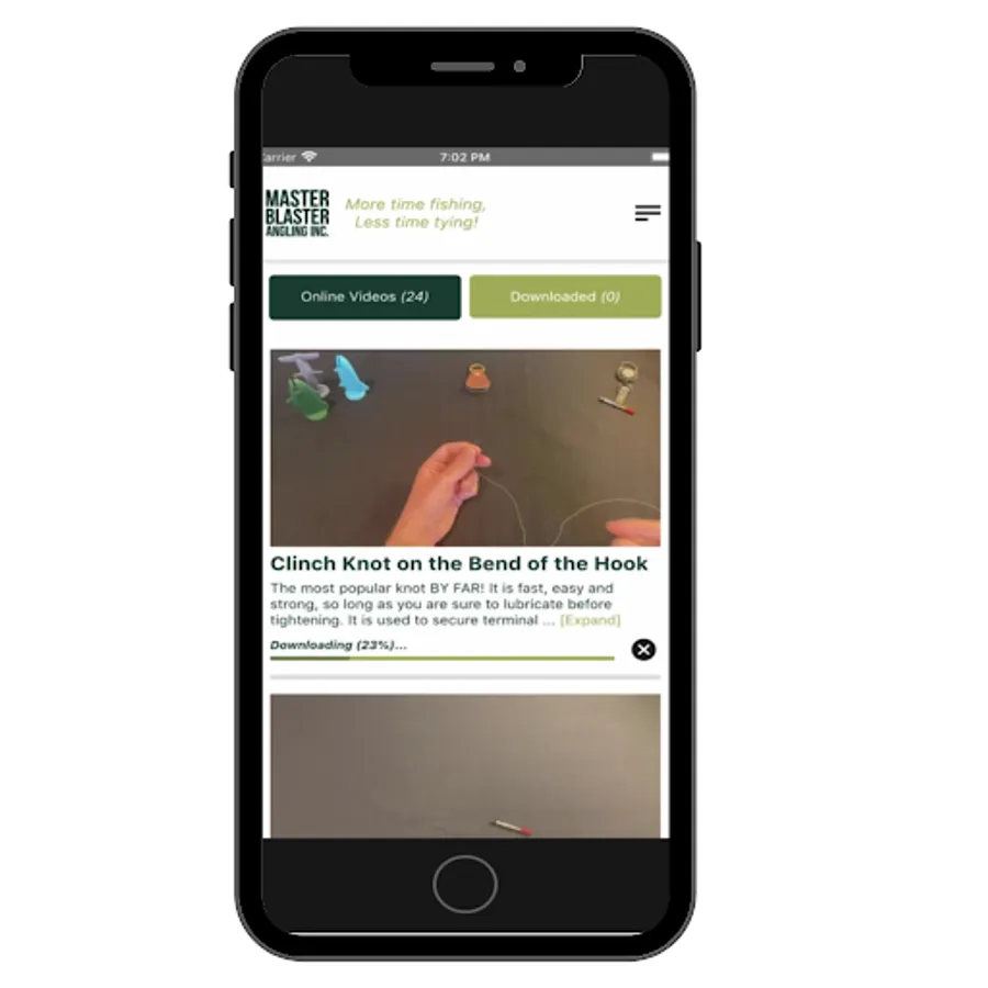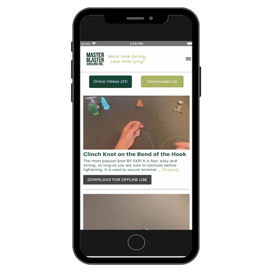 The Knot Kneedle® app will allow you to take all your knot tying video tutorials with you even if you don't have cell service! Just download the The Knot Kneedle® app and save the videos of the specific knots you tie on your device. It's that easy, just like how easy it is to tie knots with the Knot Kneedle® "Spend more time fishing, less time tying!"