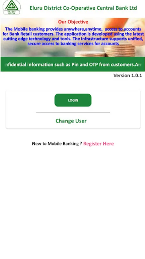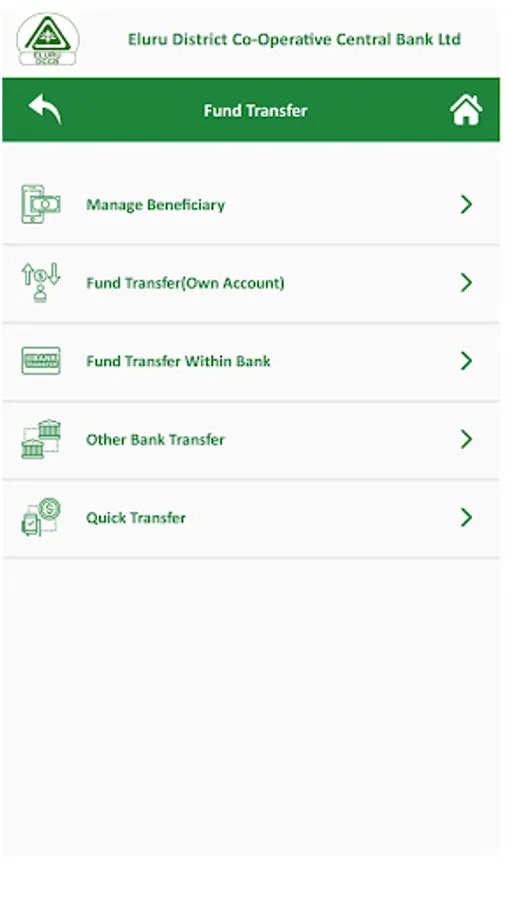 The District Cooperative Central Bank Ltd., ELURU Mobile Banking Application is available in different languages like Telugu, English, Hindi, etc. Through the mobile banking application, Customers can obtain account balances, account statements, Self-Fund Transfer, Intra Fund Transfer (Transfer money to ELURU DCCB accounts), and Inter Funds Transfers (Transfer Money to other Bank accounts) through NEFT/IMPS, Quick Transfer.
