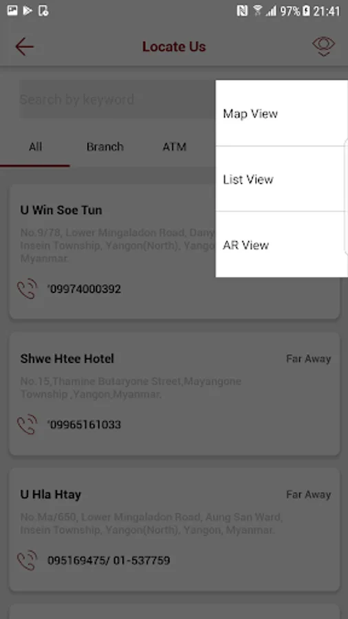 Easily find latest promotion and our Branches, ATMs, Agents, Merchants.