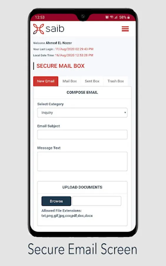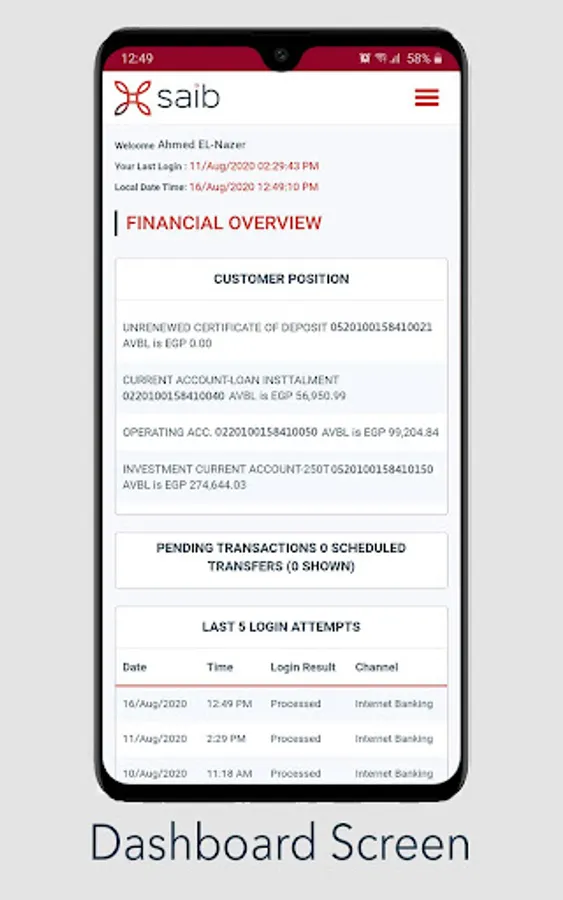 Use your saib Mobile Banking for an easy, fast, and convenient banking experience without the need to use your computer for quick and secure access to your accounts, TDs, CDs, Loans..etc