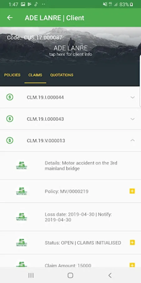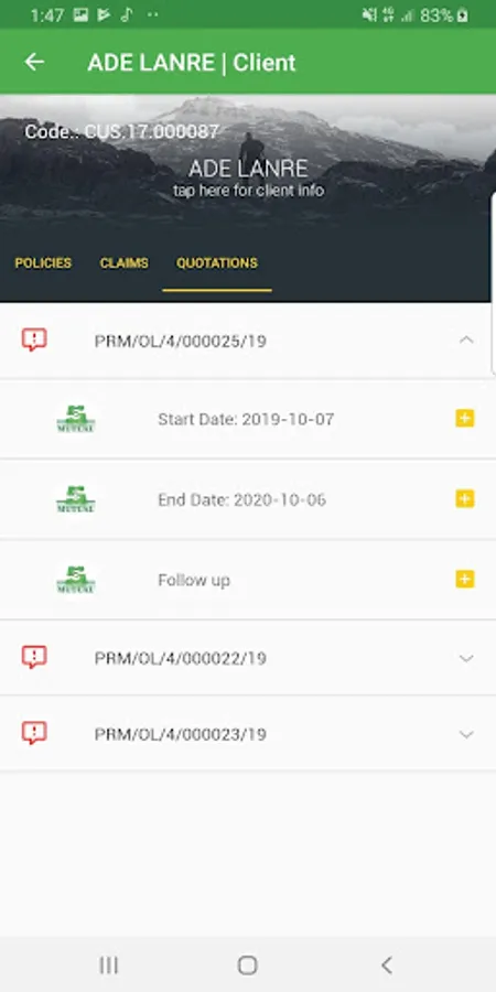 This application is for Mutual Benefits Agent to manage their costumers policies i.e buy, renew and complete a transaction on behalf of a customer. Thr agemt cam also perform the following