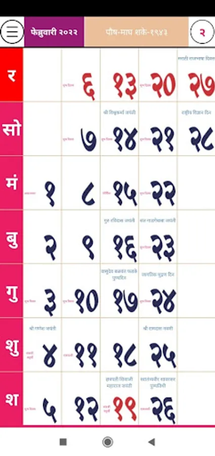 Marathi calendar App is very simple to check 2022 complete calendar.