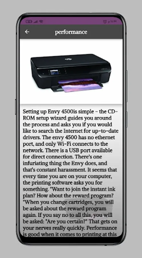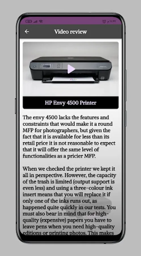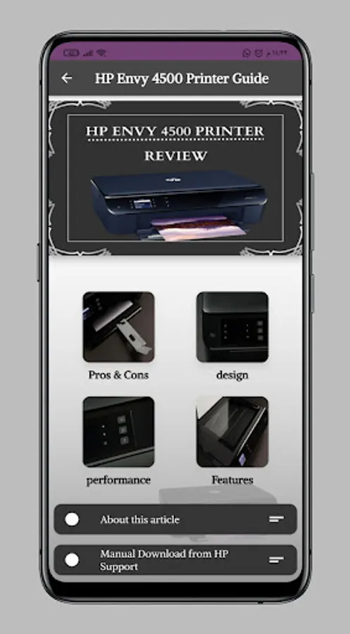 With the HP Envy 4500 Printer app Guide app, you can watch a video of the HP Envy 4500 Printer app, which allows checking out the look and feel of the HP Envy 4500 Printer app and many different features