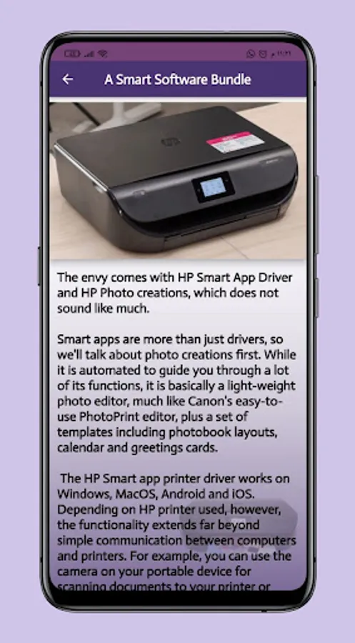 You can watch a video of the HP Envy 5000 Series app, which allows a review of the look and feel of the HP Envy 5000 Series app and its many different features including Feel the Drag - instantly connect your smartphone to a stabilizer