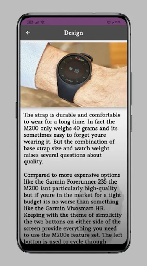 - Are you looking for a description of a smart watch type Polar M200 watch?