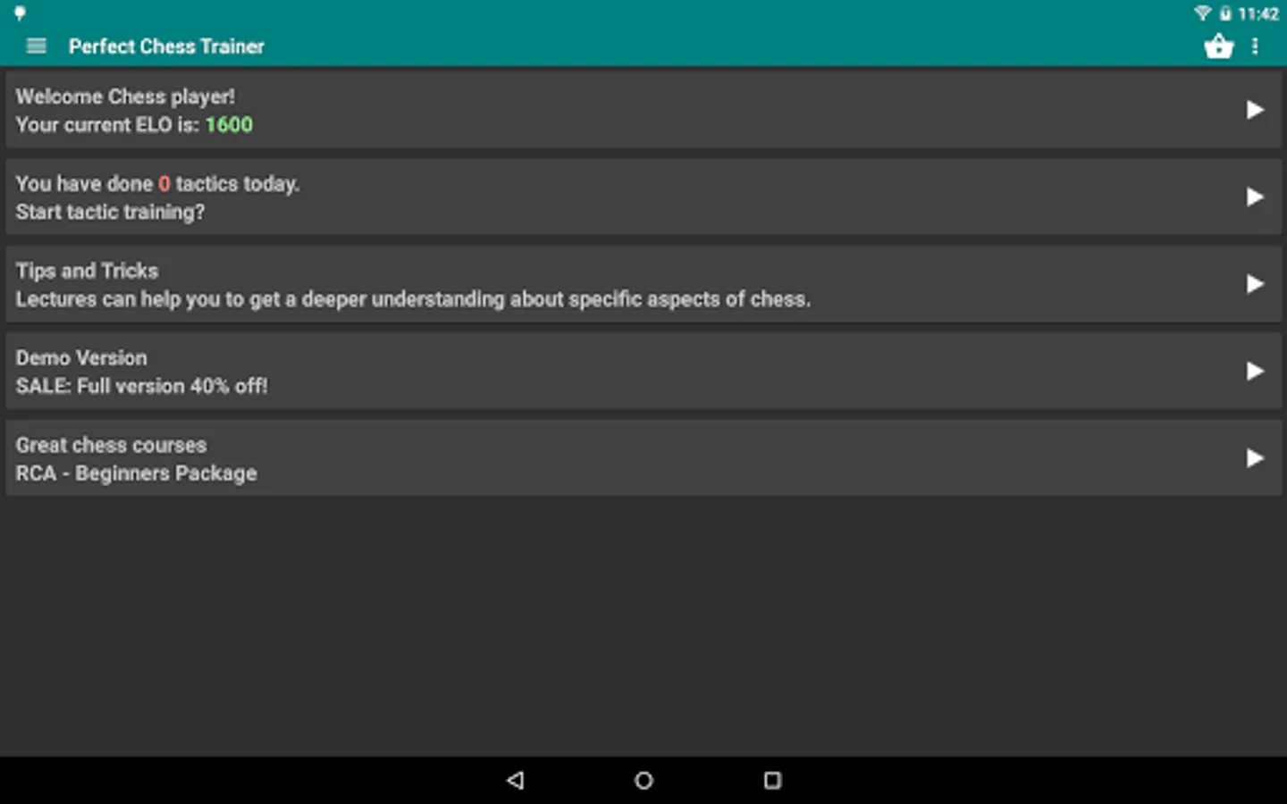 - Train Tactics (automatically adapts to your weaknesses!)