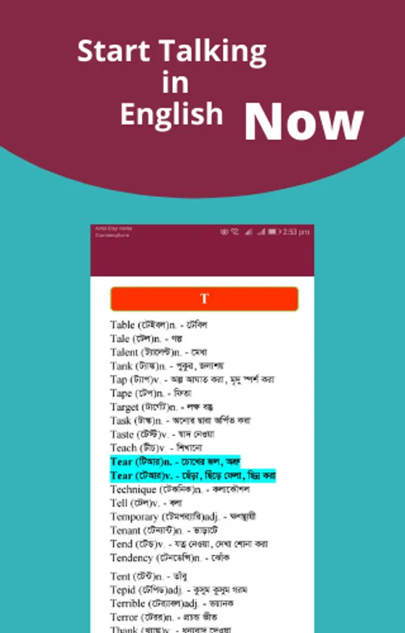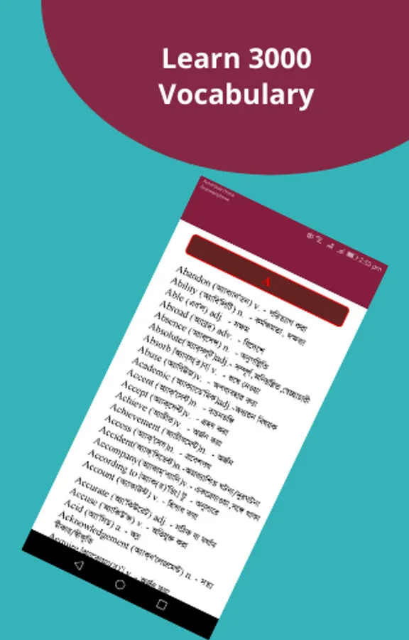 This app contains all necessary words which are used in our daily life. Here are given the correct pronunciation, more than one bangle meaning and parts of speech of every single word. Besides, here is given motivation speech which inspires the reader to read, write and work properly.