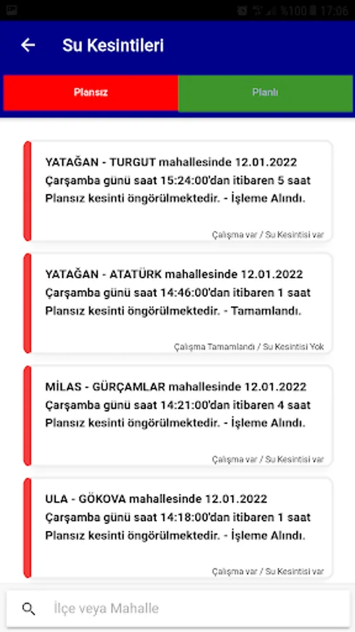 * You can access planned and unplanned water cuts in Muğla province through our application.