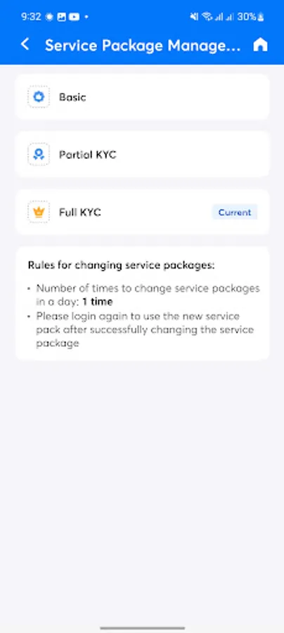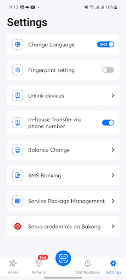- Login setup and transaction confirmation by password or fingerprint, and verification code sent via SMS OTP;