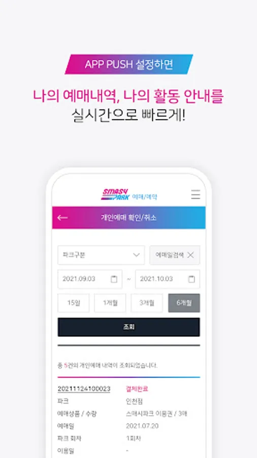 - Reservation history: Check the reservation details you have purchased in real time. You can also receive PUSH notifications the day before your visit.