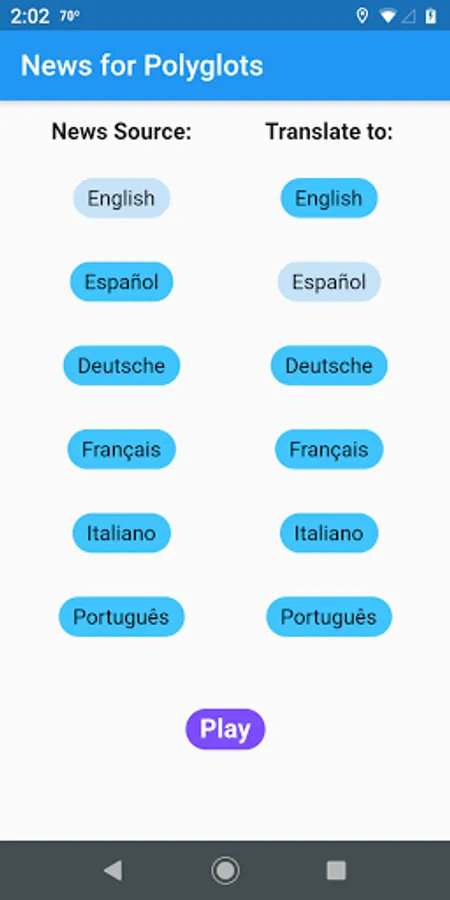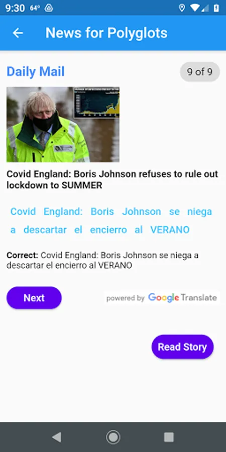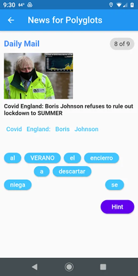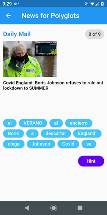 Learn a new language while reading the news! Today's headlines are presented in the language of your choice: English, Spanish, German, French, Italian or Portuguese. Then choose a language to translate the headline into. For example: Spanish headlines into English, or vice-versa. The translated English words are then presented in random order. Your job is to put them in the correct order.
