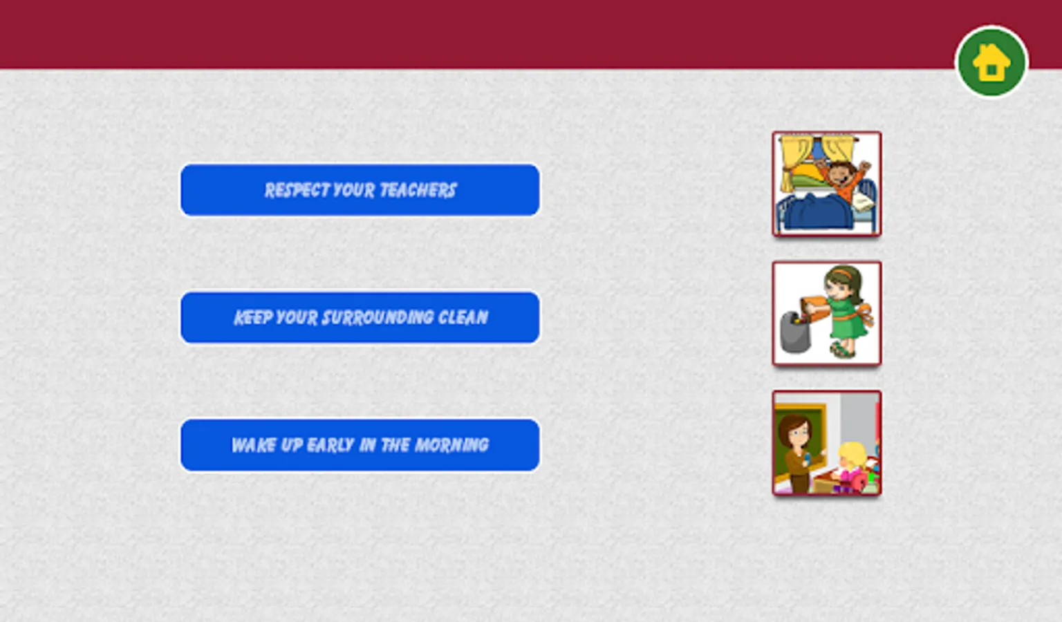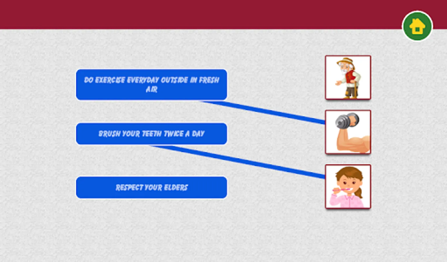 Match - This mode includes an interesting matching game which shows all the good habits on one side and their images on the other side. Kids need to match good habits with their respective images.