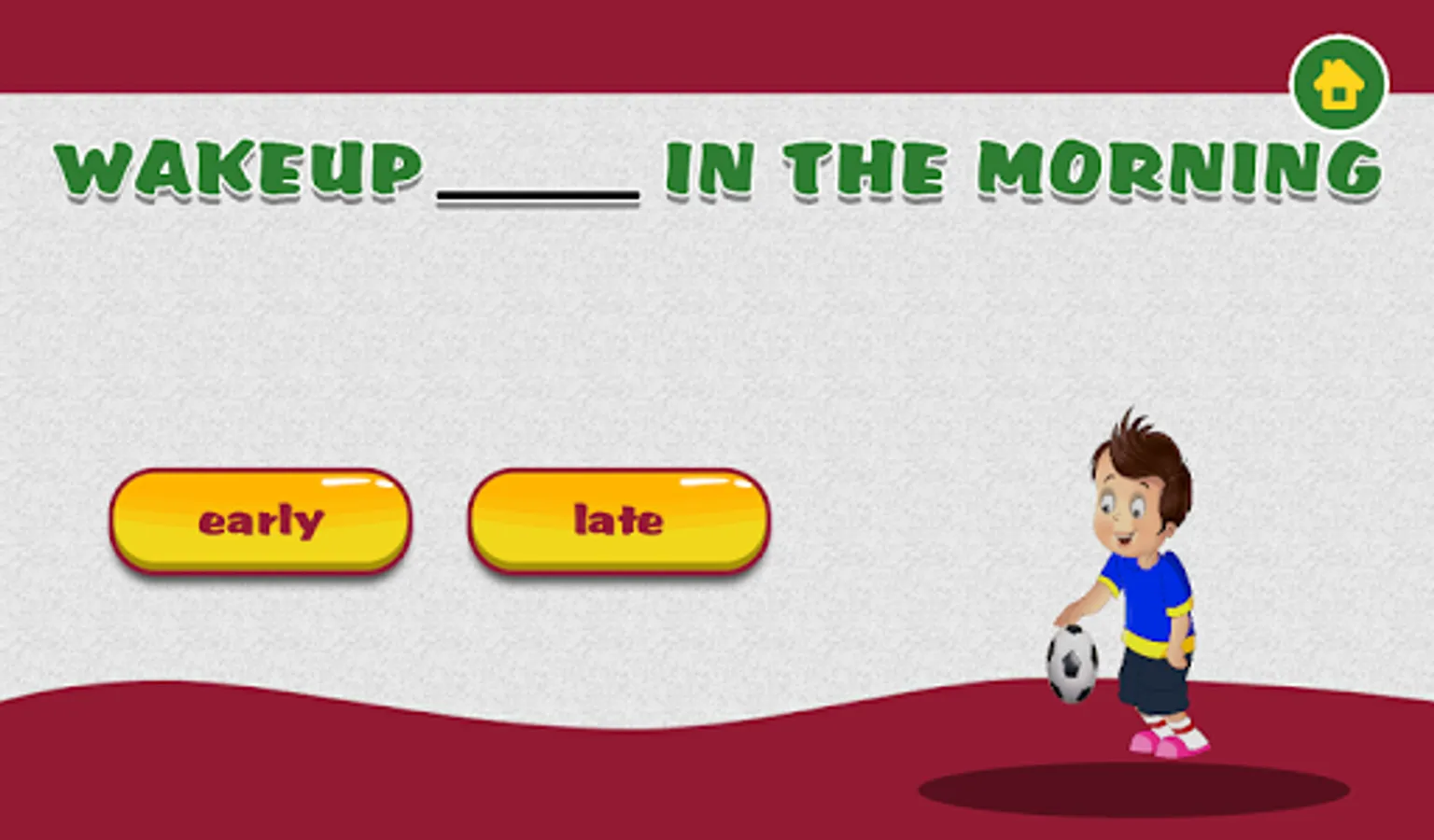 Quiz - In the quiz mode, there are fill in the blanks with all the good habits that kids have learned in the learn mode. Choose the correct word out of the two options to fill in the blank.