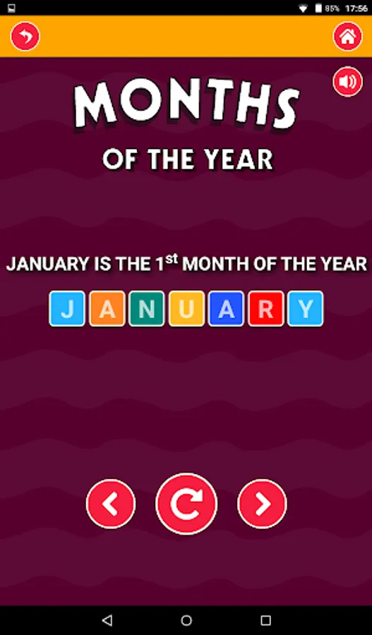 Learning Mode: In the learning mode, kids will be presented with the flashcards of each month and day and they have to click on it to listen to its spelling and pronunciation.