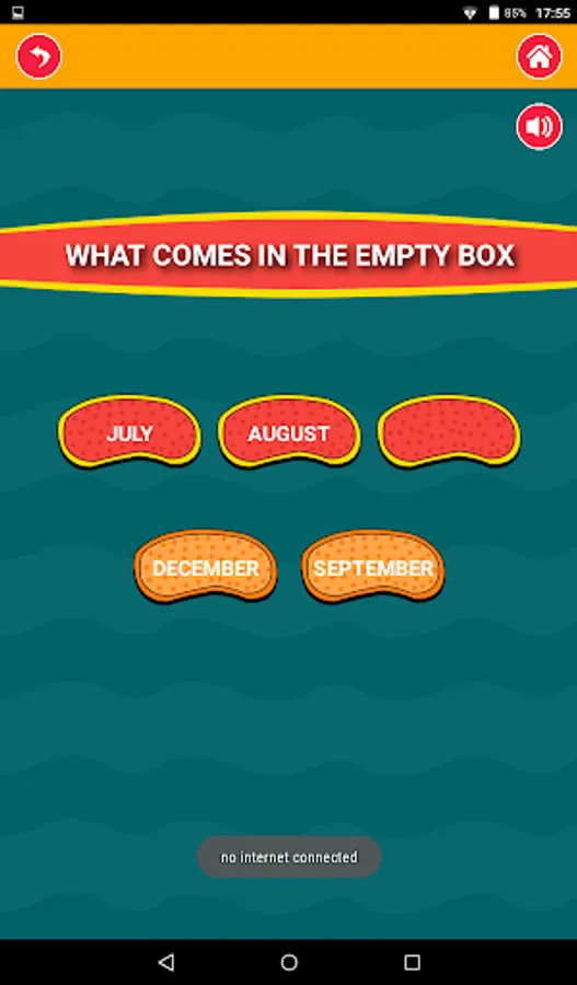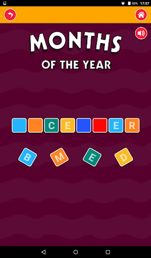 Quiz Mode: This mode will help your kids to test their understanding of months and days. They will just have to drag and drop the missing alphabets to complete the name of the month and day.