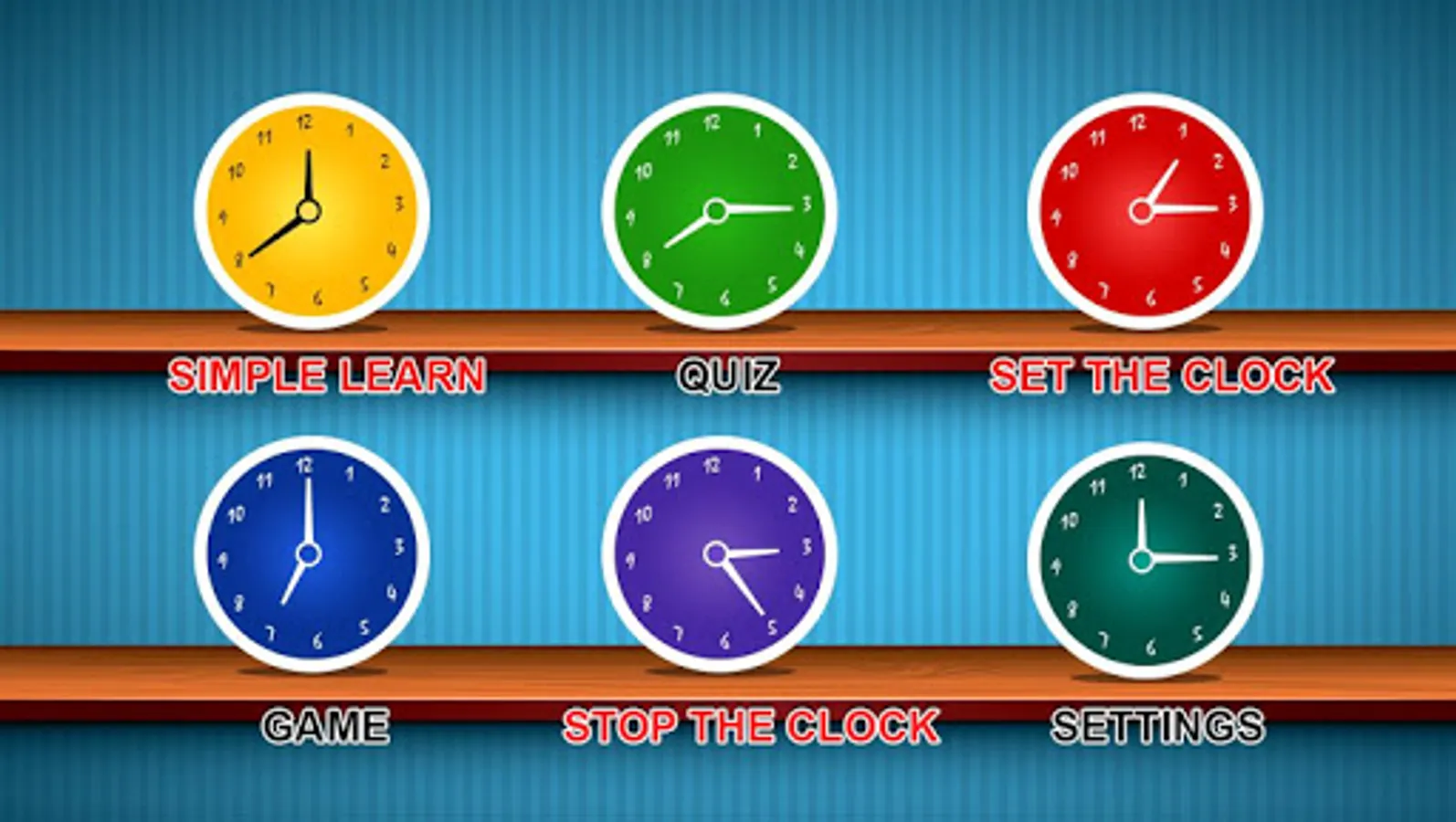 This telling time app with clock games has multiple interactive modes including simple learn, quiz, game, time clock, and settings. The ‘Simple Learn’ mode is basically the learning clock, tell time mode and the first step towards time learning which shows the time in hours and minutes and its corresponding time learning in the time clock. The ‘Quiz’ mode will let your child select the correct option for the time shown in the kids clock. The third one, ‘Game’ mode is a time game which lets your kids popping the balloons in a minute and score highest marks by popping the maximum number of balloons. The ‘Stop the Clock’ mode is also a kind of learn tell time quiz which asks kids to stop the clock at the exact time mentioned in hours and minutes.