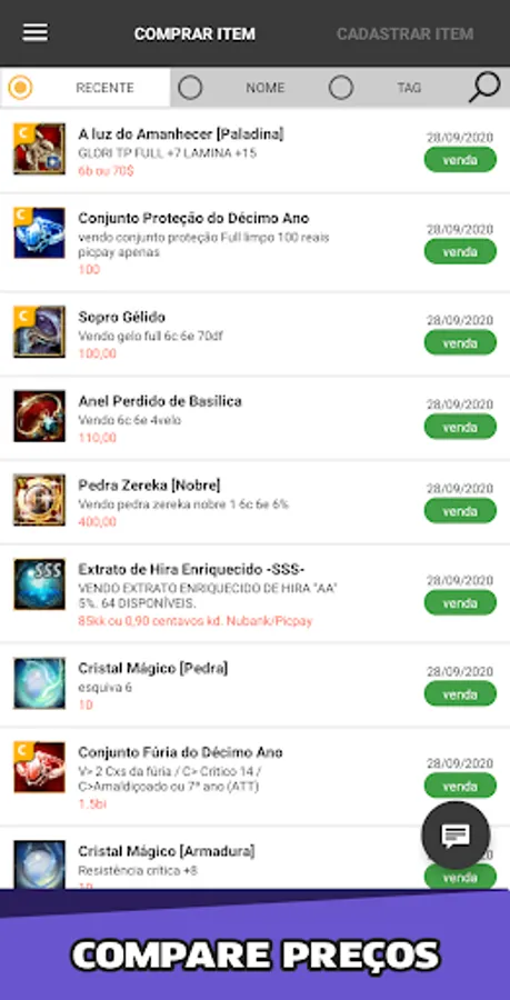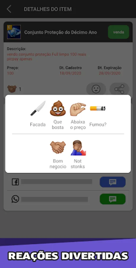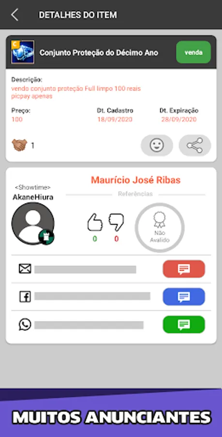 With it you can contact players from all over the world through Facebook, Whatsapp or Email. Whether for shopping, sales, trading or a simple price query, this application will be very useful.
