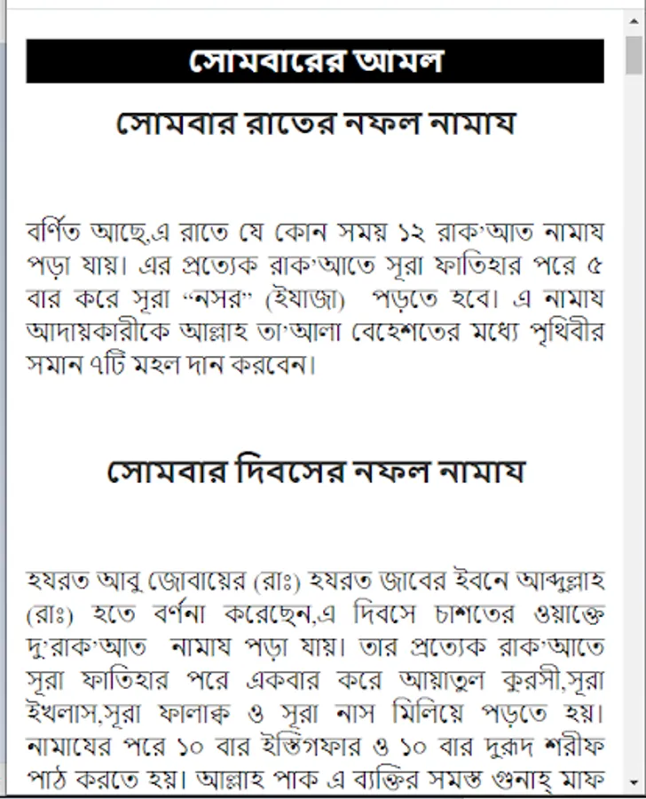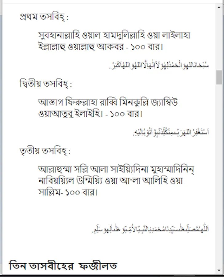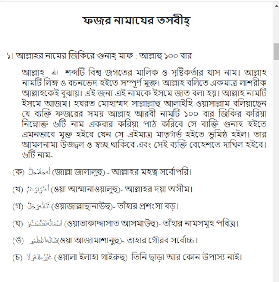 If you do any deeds every day, you will get suitable zayah, they have been beautifully recorded in this app. Here are the days of the week in which the beloved servants of Allah will recite the Tasbeeh in which prayers according to the day. It is written in Arabic as well as Bengali language in a pure and accurate manner. If any servant of Allah can get the mercy of Allah after reading this app, it will be considered as the success of making this app.