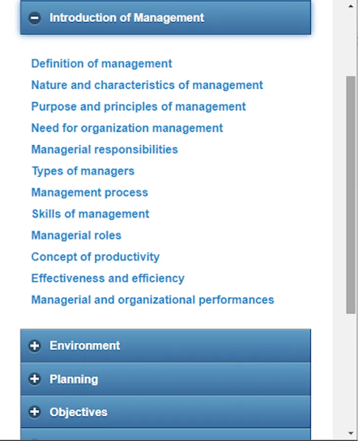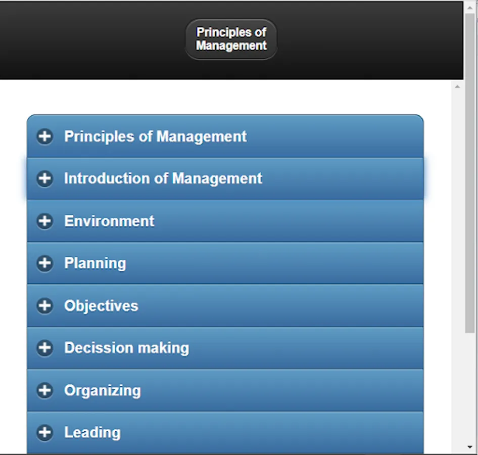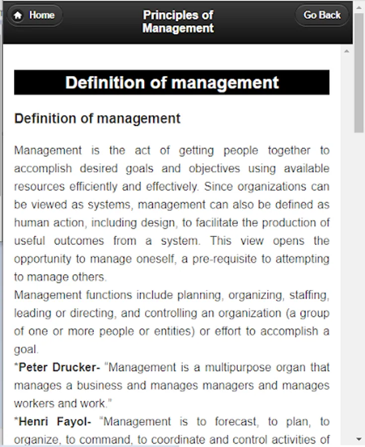 All lessons of Principles of Management, A major subject of BBA. This app is helpful for BBA students and teachers. A student who wants to learn about the Principles of Management can study from this app.