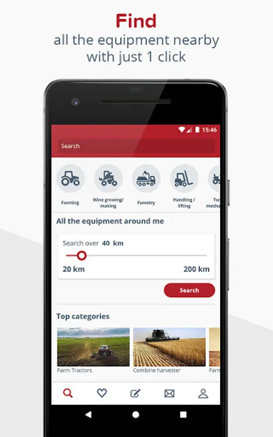 - Geolocate the equipment to search close to you or anywhere worldwide